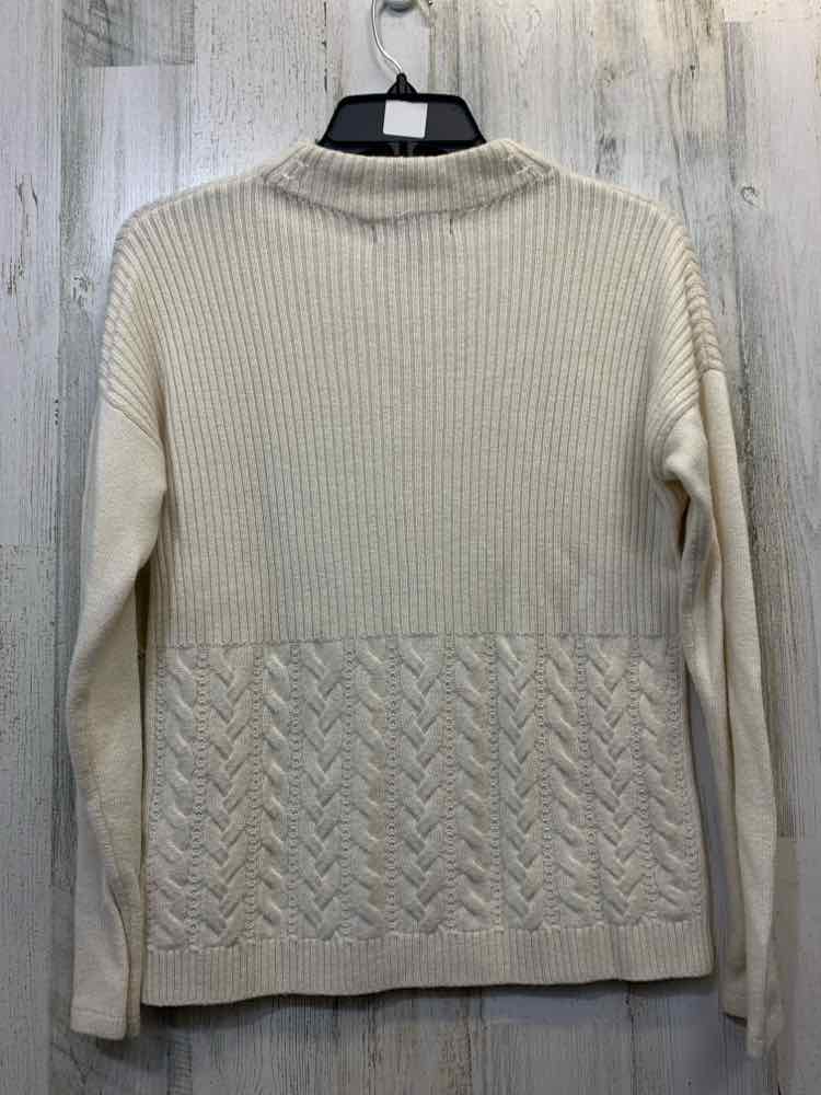 IVORY HIGH NECK RIBBED W/ CABLE ON BOTTOM HALF SWEATER