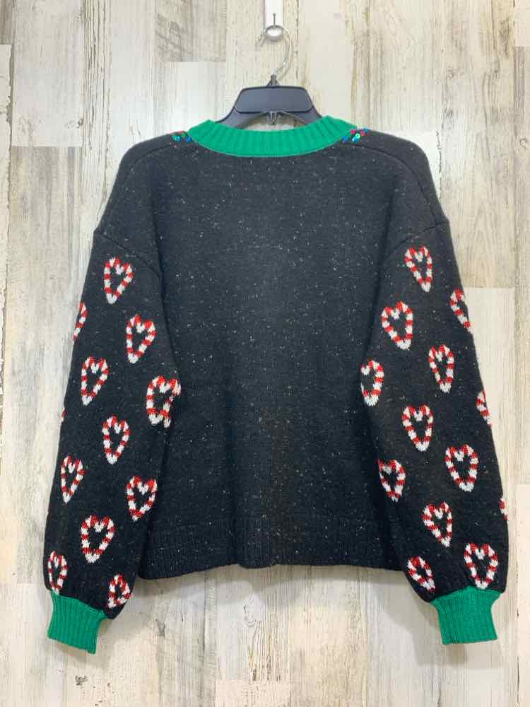 BLACK CARDIGAN W/ GREEN & CANDY CANE TRIM (SIZE S)