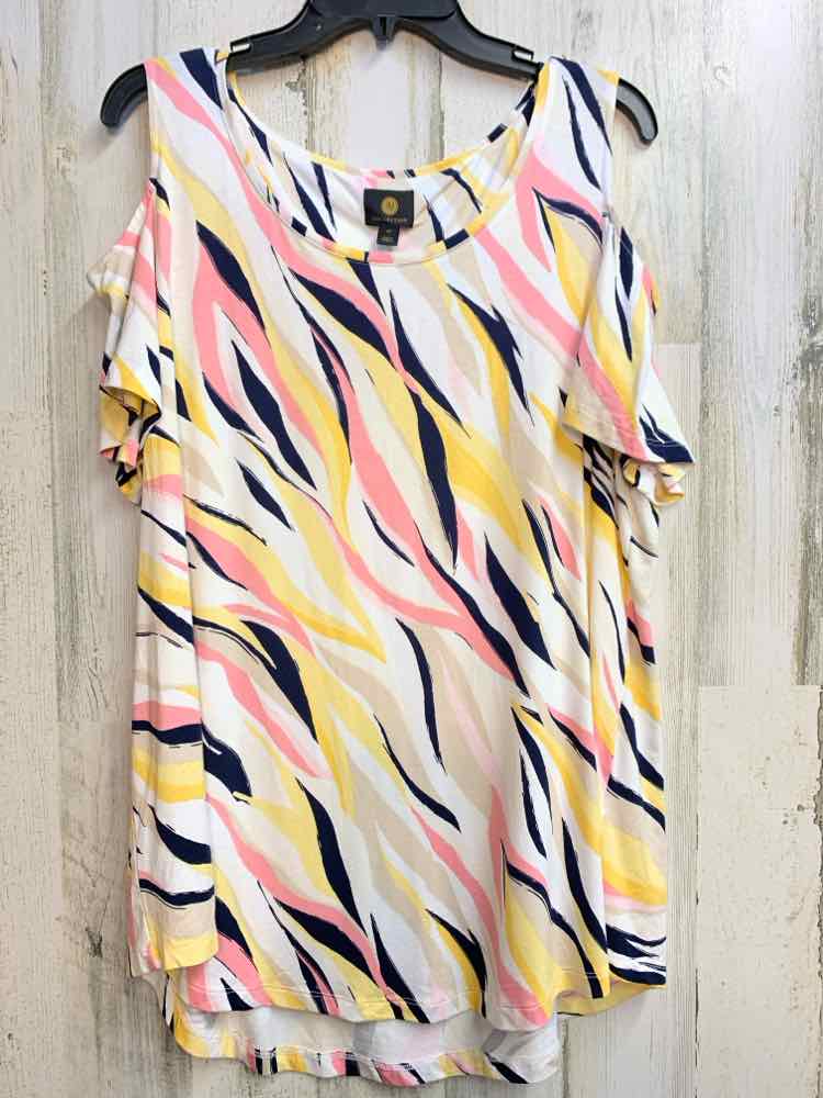 NWT JM COLLECTION PLUS SIZES Size 1X WHT/PNK/YEL STREAKS SHORT SLEEVES TOP