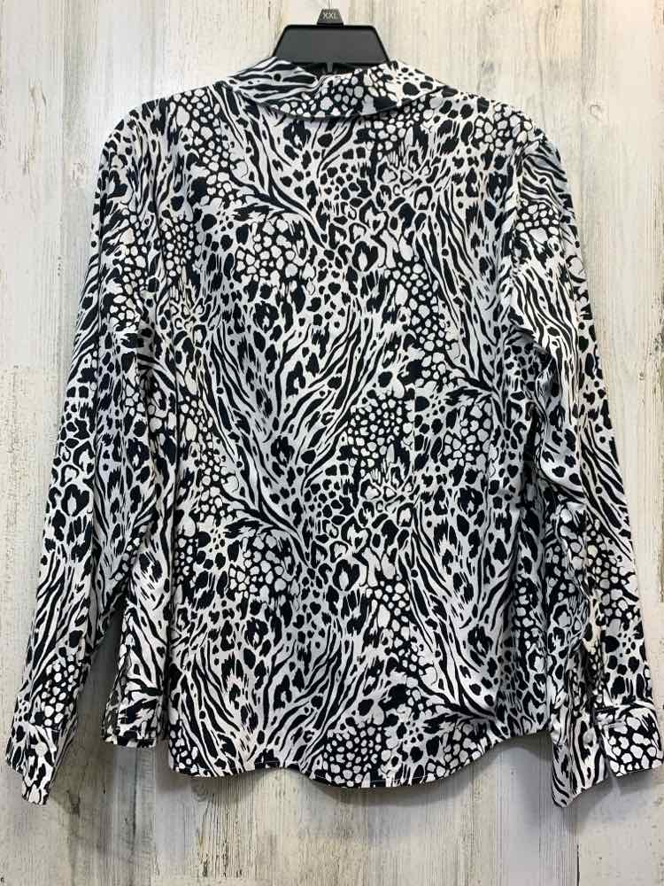 PRE-OWNED CHICOS Tops Size 2 BLACK/WHITE CHEETAH PRINT BUTTON UP TOP/LONG SLEEVE