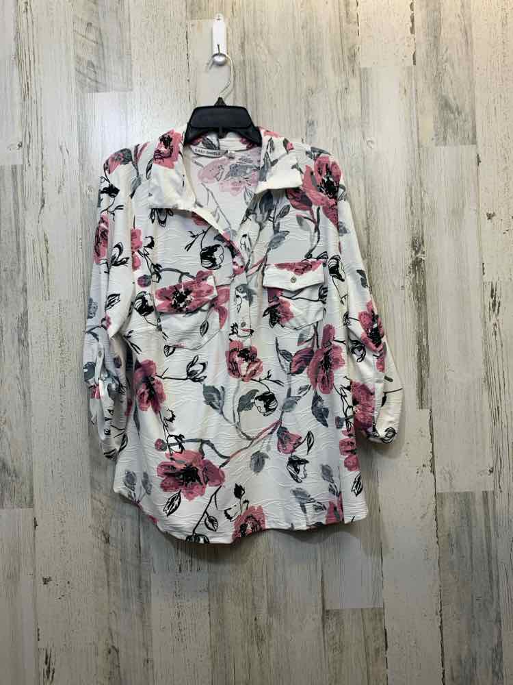 PRE-OWNED EMILY DANIELS Tops Size XL WHITE/BLACK/MUAVE Floral LONG SLEEVES TOP/F