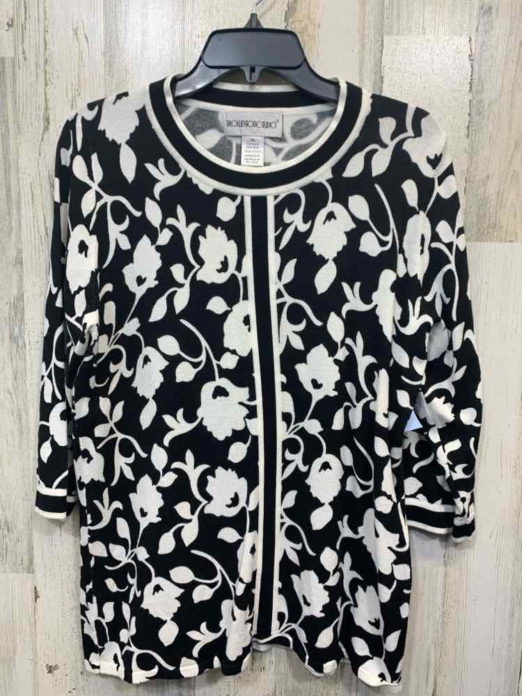 PRE-OWNED BROWNSTONE STUDIO Tops Size XL BLACK/WHITE Floral SWEATER Sweater/BLAC