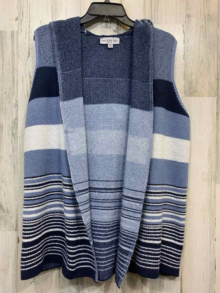 PRE-OWNED SOUTHERN LADY Tops Size PM NVY/BLU/WHT Stripe SLEEVELESS W/HOOD Vest